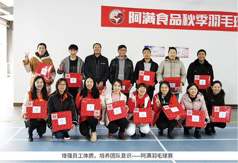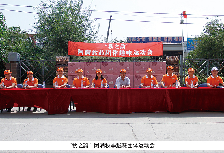 阿滿食品的成功來自于兢兢業(yè)業(yè)的阿滿人,阿滿食品以人為本,給員工提供免費(fèi)的住宿環(huán)境、舒適的辦公環(huán)境,并重視員工的業(yè)余文化生活,公司內(nèi)部設(shè)有員工活動(dòng)中心,倡導(dǎo)員工踏實(shí)工作,開心生活。公司定期舉辦各類團(tuán)建活動(dòng),豐富多彩的文化體育比賽活動(dòng),重視每一位阿滿人的感受,正是因?yàn)檫@份熱愛,讓每一位阿滿人都充滿滿滿的幸福感。